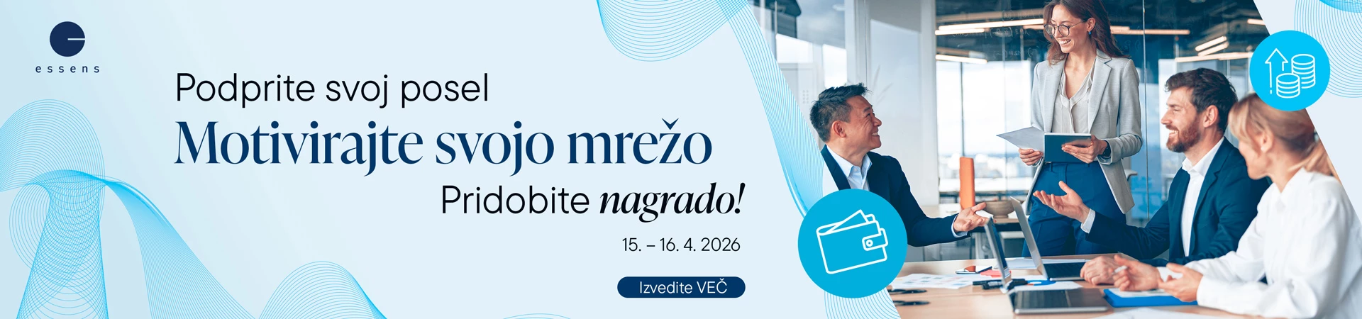 Postanite del uspešnega mednarodnega podjetja in zgradite lastno podjetje z ESSENS! Ponujamo vam preizkušeno poslovno priložnost, ki vam bo omogočila, da ne le dosežete finančno neodvisnost, ampak tudi navdihujete druge. Z nami boste pridobili stalno podporo, profesionalno usposabljanje in privlačne nagrade, ki vas bodo motivirale k rasti.