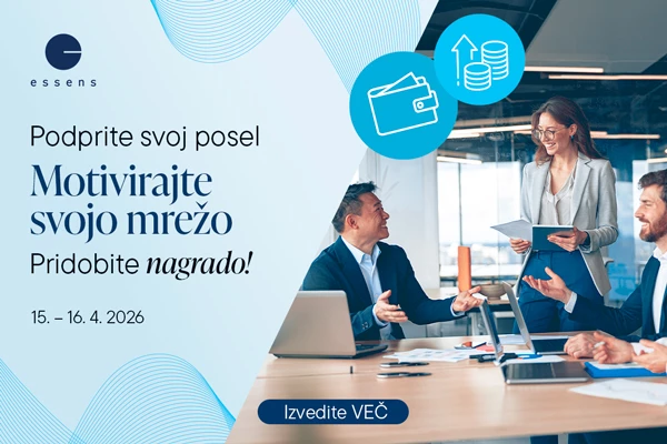 ESSENS prinaša možnost finančne svobode, osebnega razvoja in neomejenih možnosti rasti. Z nami lahko zgradite lastno podjetje s premium izdelki in izkoristite preizkušen poslovni model, ki vam omogoča rast brez omejitev. Organiziramo navdihujoče KickOFF dogodke, izobraževalne seminarje po vsej Evropi, tistim, ki so najbolj uspešni, pa ponujamo luksuzne, v celoti plačane počitnice v Turčiji.