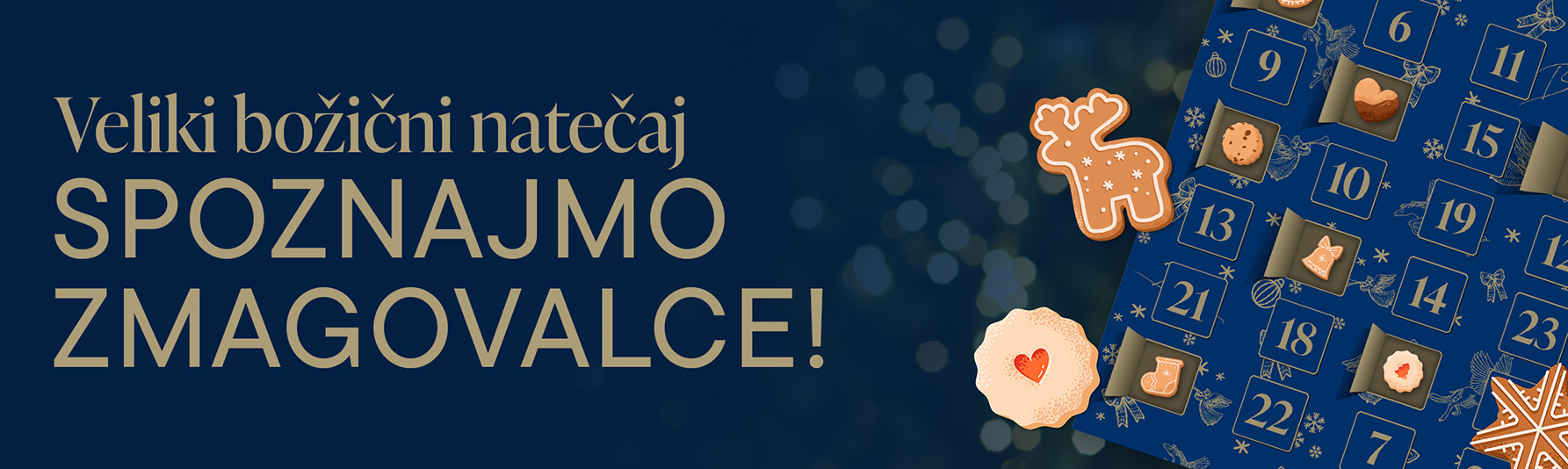 V žrebanje so bili vključeni vsi, ki so vestno označili vseh 24 sladkih dobrot. Z veseljem sporočamo, da so bili izbrani trije zmagovalci, ki bodo prejeli dragocene nagrade. Dobljene nagrade bodo samodejno dodane v naslednje naročilo.